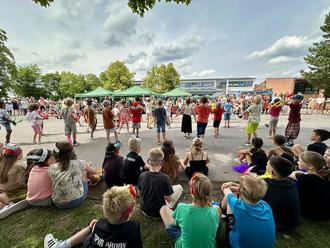 Es gibt Traditionen die wichtig sind. Dazu gehört das Schulfest für die Kinder am Ende eines langen Schuljahres. Der Übergang in die nächsten Jahrgangsstufen wird gefeiert und sicher auch die bevorstehenden Sommerferien. Auf die vielen Eltern und zahlreichen Großeltern im Kreise der Gäste wartete in diesem Jahr ein buntes Programm, das eine Reise um die Welt als Motiv hatte und viel Freude bereitete.