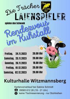 Was so alles passiert, wenn ein junger Landwirt eine Frau sucht und sich bei der Kuppelshow „Rendezvous Kuhstall“ anmeldet erleben Sie in dem gleichnamigen Stück. Nicht alle Familienangehörige sind glücklich und auch die Kandidatinnen haben so einige Überraschungen parat. Wir wünschen Euch viel Spaß.