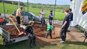 Im Rahmen des letzten „Engagierten Frühjahrsstarts“ führte der TV Hetzbach 1919 e. V. - Abteilung Fußball Baumaßnahmen auf dem Vereinsgelände durch. Dabei packten Jung und Alt mit an.