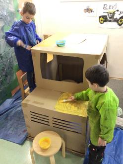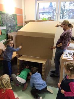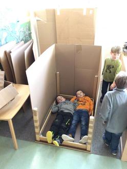 Nachdem wir genügend große Pappen gesammelt hatten, ging es mit der Arbeit los.