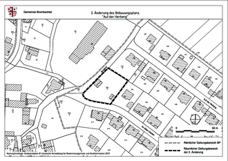 Der Geltungsbereich der 2. Änderung des Bebauungsplanes „Auf der Herberg“ befindet sich im Norden des Ortsteiles Kirchbrombach und beschränkt sich auf das Flurstück Nr. 193/1, Flur 10, Gmkg. Kirchbrombach. Der räumliche Geltungsbereich des Bebauungsplanes ergibt sich ebenso aus dem beigefügten Kartenausschnitt (Lageplan) in dem der Planbereich gekennzeichnet ist. Der Kartenausschnitt ist als Anlage Teil dieser Bekanntmachung.
