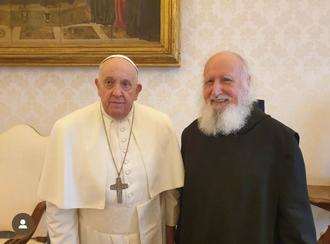 Pater Anselm Grün (r) bei seiner Audienz mit Papst Franziskus, Ende März in Rom