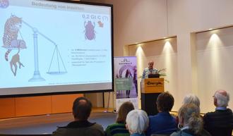 Blüthgen lehrt und forscht an der TU Darmstadt zur Wechselwirkung von Insekten mit anderen Insekten und Pflanzen. Gemeinsam mit seinen Mitarbeiterinnen und Mitarbeitern ist er in mehreren Forschungsvorhaben aktiv. „Insekten sind essentiell für fast alle Prozesse in Ökosystemen“, hob er vor rund 120 Zuhörerinnen und Zuhörern hervor – im Grünland genauso wie im Wald.