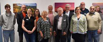 Die Mitglieder des Fotoclubs Reichelsheim stellen ihre Bilder bis zum 2. August im Landratsamt in Erbach aus. Bei der Vernissage begrüßte Erster Kreisbeigeordneter Oliver Grobeis (hinten Mitte) die Künstlerinnen und Künstler.