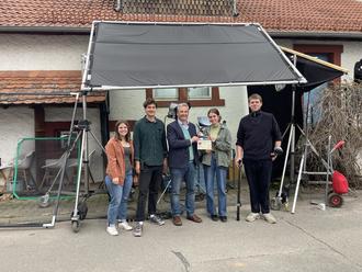 Auf dem Foto: Lina Neumann, Produktion; Luca Meyer, Kamera; Anna Leah Bolln, Regie; Kristina Hammer, Ton