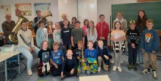 Am Montag, den 26.04.2024, fand an der Grundschule Brombachtal der jährliche Bläsernachmittag statt. Im Rahmen des Musikunterrichts in der dritten Klasse lernen die Schülerinnen und Schüler im Vorfeld die verschiedenen Blasinstrumente kennen. Am Bläsernachmittag durften sie diese Instrumente dann live erleben und sogar selbst ausprobieren. Hierfür kamen zwischen 14.00 und 15.30 Uhr sieben Musiker der Blaskapelle Langenbrombach an die Schule.