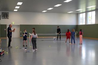 Los ging es an der Grundschule Brombachtal um 9.00 Uhr mit einer Begrüßung auf dem Schulhof. Im Anschluss konnten zunächst die Erst- und Zweitklässler und danach die Dritt- und Viertklässler in zwei Sportangebote der hiesigen Vereine schnuppern, in die sie sich zuvor eingewählt hatten. Zur Auswahl standen Golf, Tennis, Fußball und ein Bewegungsparcours des TSV. Alle Vereine hatten hierzu ehrenamtliche Helfer geschickt, die die Kinder von ihren jeweiligen Sportarten begeistern konnten. So sah man auf dem Sportplatz Kinder mit Fußbällen verschiedene Übungen absolvieren und in der Halle Schülerinnen und Schüler, die angeleitet von erfahrenen Tennisspielern, unterschiedliche Stationen durchliefen. Des Weiteren waren die Kinder in der Halle in einem aufgebauten Bewegungsparcours mit Hürden, Schwebebalken und sogar einer Gletscherspalte sportlich aktiv und konnten sich in Geschicklichkeit mit Schläger und Ball an den Golfstationen üben. Große Begeisterung war sowohl bei den Kindern als auch bei den Erwachsenen zu spüren. So verging die Zeit bis 11.15 Uhr doch sehr schnell und am Ende war allen Beteiligten klar: Wir freuen uns schon auf den nächsten Bewegungstag!