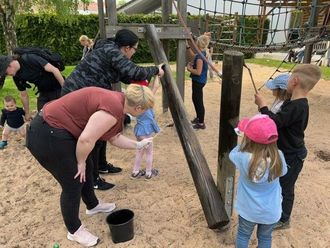 Zahlreiche große und kleine Hände packten beim „Engagierten Frühjahrsstart“ auf dem Spielplatz in Höchst/Hummetroth mit an, um die Anlage zu säubern und die Spielgeräte auf Vordermann zu bringen.