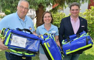 „Wir hatten insbesondere bei Großschadenslagen festgestellt, dass die bisherige Ausstattung nicht ausreichend war, um alle Einsatzmaterialien zu verstauen. Das gehört nun der Vergangenheit an“, freut sich Lena Raubach, Koordinatorin der Notfallseelsorge und Krisenintervention, bei der Übergabe der ersten Taschen. Mit den neuen Einsatztaschen ausgerüstet, sehen die Drei das Team der Notfallseelsorge und der Krisenintervention gut ausgerüstet.