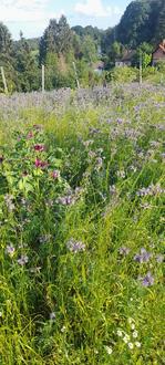 In Hembach wird was für die Bienen getan. Angelegte Blumenwiese bei Werner Krämer.