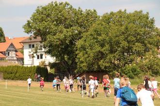 Dieses Mal stand das Schulfest ganz im Zeichen der Spende. Hierzu wurde ein Spendenlauf organisiert. Die Schüler*innen suchten sich im Vorfeld Sponsoren, die die Kinder mit einem bestimmten Betrag pro gelaufener Runde entlohnten. Um keinen Sponsoren in finanzielle Schieflage zu versetzen, wurde die Laufzeit begrenzt – auch wenn einige Kinder gerne noch länger gelaufen wären. Die Erst- und Zweitklässler hatten 10 Minuten Zeit den Sportplatz zu umrunden. Den Dritt- und Viertklässler standen 15 Minuten zur Verfügung.