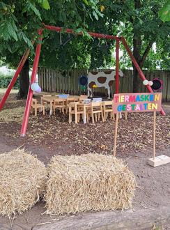 Nach dem offiziellen Teil konnten die Kinder an verschiedenen Spiel- und Erlebnisstationen aktiv werden. Besonders beliebt waren: Entenangeln, eine Bastelstation, Traktor-Fotoshootings, Stockbrotbacken, ein „Streichelzoo“ aus Luftballontieren, eine Kuh zum Melken, ein Wasserstaffellauf, Dosenwerfen und Glitzertattoos. Für das leibliche Wohl war dank eines reichhaltigen Buffets gesorgt – die Eltern hatten fleißig vorbereitet und grillten Würstchen für alle Gäste. Zum Abkühlen gab es noch leckeres Wenneleis aus dem mobilen Eiswagen. Es war ein rundum gelungenes Fest.