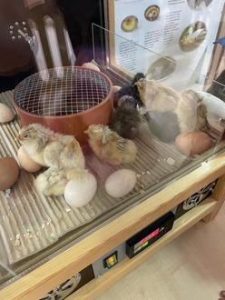 Die Kinder beobachteten täglich gespannt die Entwicklung der Tiere – eine Erfahrung, die auch bei Eltern und Erzieher*innen große Begeisterung auslöste. Um den Küken einen möglichst naturnahen Lebensraum zu bieten, stellte der Geflügelzuchtverein eine große Holzkiste mit Glasfront zur Verfügung. So konnten die Kinder die Tiere beobachten, ohne sie zu stören, und es entstand eine besondere Nähe zwischen Mensch und Tier.