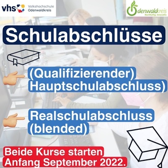 Auch in 2022 bietet die Volkshochschule Odenwaldkreis Vorbereitungskurse zum Erwerb des (qualifizierenden) Hauptschulabschlusses bzw. der Mittleren Reife (Realschulabschluss) an.