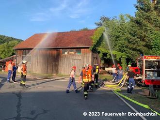 Am Freitag, den 07. Juli rückten gegen 19.15 Uhr sämtliche Einsatzfahrzeuge der Feuerwehr Brombachtal in Birkert an. Grund hierfür war die diesjährige Gemeinschaftsübung der Einsatzabteilung und Jugendfeuerwehr. Angenommen war ein Brand in einer Zimmerei mit einer vermissten Person. Das erstanrückende Fahrzeug, besetzt mit unseren Nachwuchskräften, begann sofort mit der Brandbekämpfung. Die nachrückenden Fahrzeuge mit den „alten Hasen“ unterstützten hierbei und leiteten die Menschenrettung ein. Gemeinsam konnte der angenommene Brand schnell unter Kontrolle gebracht und die vermisste Person gefunden werden. Im Anschluss an die Übung wurde zusammen an der Grillhütte in Birkert gegrillt.