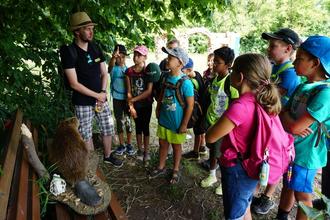 Was braucht man für einen tollen Ferientag: 13 Kinder ausgestattet mit Becherlupen und 5 NABU Aktive, 1 Bollerwagen, Sonne und gute Laune. All dies hatten wir beisammen und konnten so einen erlebnisreichen Tag gemeinsam verbringen. Zu Beginn lernten wir alles über den Biber: Wie sieht er und sein Lebensraum aus? Wovon ernährt er sich, wie beschafft er sich sein Futter und vieles mehr. Besonders anschaulich wurde es durch ein präpariertes Exemplar, das aus dem Fundus des Naturschutzzentrums Odenwald NZO ausgeliehen werden konnte. Nun ging es auf die Suche nach Biberspuren und es fanden sich allerhand große und kleine angenagte und gefällte Bäume an unterschiedlich Stellen, Dämme und am großen See sogar eine Biberburg. Auf den Wiesen gingen wir mit unseren Becherlupen auf Erkundungstour und fanden zahlreiche Grashüpfer in unterschiedlichen Größen, Bienen, Hummeln, Schmetterlinge, Käfer, Heupferdchen, Libellen und eine große Zebraspinne. Mit den Becherlupen konnten die Tiere behutsam beobachtet werden und mit Hilfe von Bestimmungshilfen identifiziert. So viel erkunden macht hungrig und es gab ein leckeres Picknick mit viel Gemüse, Käse und Aufstrichen. Es hat allen sehr gut geschmeckt und ruckzuck war alles aufgegessen. Nun erforschten wir auch was in dem vom Biber aufgestauten Gewässer lebt. Dabei besuchte uns eine Entenfamilie mit Küken. Auch das Wasser der Mümling wurde untersucht und hier konnten alle eine angenehme Abkühlung erhalten. Unser Weg folgte nun weiter Richtung Kurpark begleitet von noch mehr Biberspuren wie zb Biberrutschen. Am Wasserspielplatz gab es noch Kuchen zur Stärkung und es konnte noch einmal ausgiebig gespielt werden. Das NABU Team der Ortgsruppe Zell dankt für diesen gelungenen Tag und freut sich auf das nächste Mal.