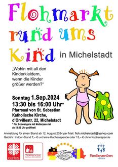 Wer an diesem Tag einen Stand haben möchte, kann sich ab Montag, dem 12.08.2024 unter der E-Mail-Adresse floh.michelstadt@yahoo.com anmelden. Tische zum Verkauf werden im Saal durch den Verein gestellt. Die Standgebühr beträgt pro Indoor-Stand 7,- Euro und eine Kuchenspende oder 15,- Euro ohne Kuchenspende.