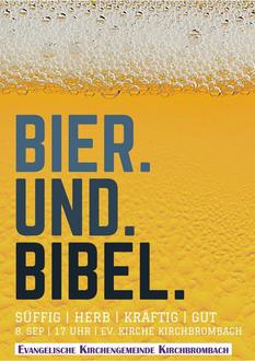 Bier und Bibel werden am 8. September um 17.00 Uhr in der Evangelischen Kirche zusammengebracht. Vier Biere unterschiedlichen Geschmackes stehen zur Verkostung bereit. Dazu wird je eine kurze und passende Geschichte aus der Bibel erzählt. Die Gruppe AygenArt um Vera Nitsch gestaltet die Musik.