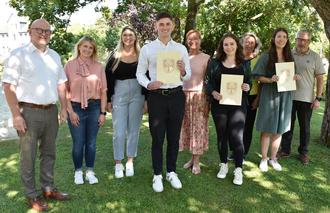 Landrat Frank Matiaske überreichte ihnen am Dienstag (27.8.) die entsprechenden Urkunden und ermunterte sie, sich in der Kreisverwaltung im Lauf der Zeit ihre Schwerpunkte zu suchen: „Probieren Sie sich aus und schauen Sie, welche der vielfältigen Arbeitsbereiche, die es bei uns gibt, Ihnen besondere Freude machen.“ In diesem Sinne äußerten sich auch die Gleichstellungsbeauftragte Petra Karg, die Personalamtsleitern Petra Stephan, die Ausbildungsleiterin Karoline Kampa sowie Ralf Kott vom Personalrat und Lara Kritzinger von der Jugend- und Auszubildendenvertretung.