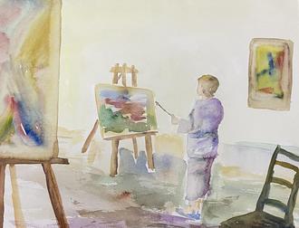 Bei der Arbeit: ein Selbstbildnis von Suse-Fried Fischer.