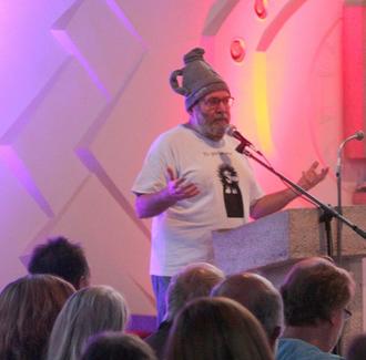 Mit Witz und Humor schließt Greifenstein seine Vorstellung und erzählt von der Evolution von Mann und Frau und der Geschichte vom Mammuth... (neugierig geworden?).