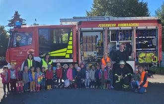 Die Kinder und Erzieherinnen bedanken sich recht herzlich bei dem stellv. Gemeindebrandinspektor Dennis Rückert und den Wehrführer Stefan Eberlein von der freiwilligen Feuerwehr Brombachtal.
