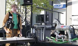Mit „Craft & Art“ werde nicht nur im Odenwald eine Neuheit präsentiert, so Moderator Dreppec, sondern seines Wissens nach handelte es sich gar um ein Art Weltpremiere, Handwerk nach dem Regeln des Slams einem Publikum zu präsentieren. Kreativ und fantasievoll aufbereitet waren alle Vorträge, so dass es bis zum Schluss spannend blieb. Wer hat am überzeugendsten dargestellt, wie sein Handwerk Traditionen bewahrt und gleichzeitig auf die Zukunft vorbereitet? Wem ist es überzeugend gelungen darzustellen, dass Handwerk und Kunsthandwerk innovativ und spannend sind, mit Vorurteilen aufzuräumen und Wertschätzung einzufordern? So eng beieinander lagen die akustischen Zustimmungswerte, so dass aus den beiden getrennt voneinander vorgenommenen Vorrunden drei Kandidaten in die Endauswahl berufen wurden. Den Schallpegel am kräftigsten zum Ausschlag brachte schließlich der Vortrag der 35 Jahre alten Drechsler- und Tischlergesellin Anna Hübler aus Oberzent/Hesselbach. Die junge Frau kommentierte mit einer sympathischen Leichtigkeit und viel Humor die per Video eingespielten zehn Arbeitsschritte zur Herstellung eines Odenwälder Gäulschens, so wie es seit Generationen in der Werkstatt der Odenwälder Gäulschesmacher Krämer in Reichelsheim-Beerfurth Tradition ist.