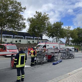 Am Samstag fand am Campus der Sporthallen in Michelstadt eine Großübung mit rund 300 Beteiligten statt. Angenommen wurde ein Anschlag, bei dem es zu einer Freisetzung verschiedener, unbekannter Stoffe kam. Dies führte zu einer großflächigen Kontamination von Personen und Objekten. Im Rahmen der Evakuierung des kontaminierten Bereiches musste für die Betroffenen ein Betreuungsplatz (BTP 500) errichtet werden. Zudem wurde der Aufbau und Betrieb einer Notfallstation zur Dekontamination von Personen und Geräten in Dekonschleusen geübt. Neben THW und DRK war auch unsere Feuerwehr Brombachtal zum Einsatz gekommen.