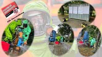 Bei einem Gefahrstoffeinsatz gehört der Chemikalienschutzanzug (CSA) zur Persönlichen Schutzausrüstung (PSA) der Feuerwehr. Er schützt den Träger nicht nur vor chemischen, sondern auch vor biologischen, radiologischen und nuklearen Gefahren. Jedes Jahr müssen Träger von Chemikalienschutzanzügen eine Übung unter Einsatzbedingungen leisten. Da reicht es nicht, den CSA einmal an- und wieder abzulegen. Auch für die Feuerwehr Brombachtal stand dieses Trainingsszenario am vergangenen Samstag an. Die CSA-Träger sind speziell ausgebildete Atemschutzgeräteträger der FF Brombachtal, die in Einsatzlagen der Gefahrenabwehr für Atomare-, Biologische- oder auch Chemische Stoffe wirken können. Im Rahmen der Übung musste an einem Rohrleitungssystem Dichtungen ausgetauscht und Risse mittels Dichtschellen wieder verschlossen werden. Anschließend mussten die Kameraden noch einen körperlichen Belastungstest durchlaufen.