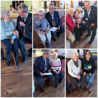 Nach der Begrüßung durch Bürgermeister Andreas Koch und die Gemeindevertretervorsteherin Dagmar Emig-Mally wurden auch an diesem Nachmittag die ältesten Teilnehmer geehrt und mit einem kleinen Präsent beglückwünscht. Darunter waren bekannte Gesichter wie Ursula Fleischer mit 94 Jahren, Hildegard Kaczmarczyk 92 Jahre alt, sowie Liesel Hatzinger, die in den nächsten Tagen 91 Jahre alt wird. Ebenfalls geehrt wurde Marie Hajek, die ihren 90. Geburtstag Anfang November feiern wird. Als einziger Mann unter den Geehrten fühlte sich Georg Vilhard, 91 Jahre alt neben den Damen durchaus wohl.
