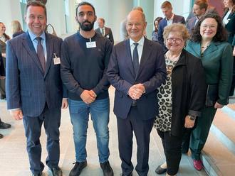 Diesen Aspekt unterstrich auch Michael Vetter, Geschäftsführer der Pflegezentrum Odenwald GmbH - in Personalunion Kreisbeigeordneter für Arbeit und Soziale Sicherung. Im Gespräch mit Bundeskanzler Scholz machte er deutlich, wie wichtig es sei, die Integration Geflüchteter in Arbeit weiter voranzutreiben: „Ohne die sehr vielen Beschäftigten mit Migrationshintergrund in den Krankenhäusern sowie in den ambulanten oder stationären Pflegeeinrichtungen in ganz Deutschland können die Patienten nur noch eingeschränkt versorgt werden. Dies gilt für Ärzte und Pflegekräfte sowie viele andere Bereiche in diesen Einrichtungen. Die Versorgung der auf Hilfe angewiesenen Menschen wäre ohne sie nicht mehr sichergestellt.“