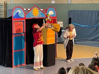 Gefördert vom Klimaschutzmanagement des Odenwald-Kreises durch Herrn Markus Linkenheil gastierte die Unterrichtseinrichtung „Lakritzes Clowntheater – Prima-Klima-Show“ in der Turnhalle der Grundschule Brombachtal.