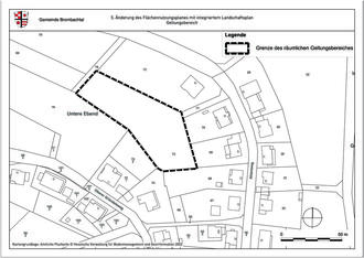 Die Gemeindevertretung der Gemeinde Brombachtal hat in ihrer Sitzung am 12.09.2023 die Aufstellung der 5. Änderung des Flächennutzungsplanes mit integriertem Landschaftsplan (FNP) im Bereich des Bebauungsplanes „Zwischen Ahlertweg und Oberem Gründelsweg“, OT Kirchbrombach, beschlossen. In der Sitzung der Gemeindevertretung am 05.12.2023 wurde der Entwurf der 5. Änderung des Flächennutzungsplanes mit Stand vom 10.11.2023 gebilligt und dabei auch der Geltungsbereich verkleinert. Die Änderung des Aufstellungsbeschlusses wird hiermit bekannt gegeben.