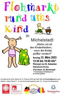 Am Sonntag, dem 12. März 2023 findet in der Zeit von 13.30 - 16.00 Uhr wieder der Flohmarkt für Kindersachen im Gemeindesaal von St. Sebastian in Michelstadt statt, der vom Verein „Frieden und Gutes für Caransebes e.V.“ in Kooperation mit dem Caritas Zentrum Erbach und Unterstützung der Sparkasse Odenwaldkreis organisiert und durchgeführt wird. Schwangere mit Mutterpass können bereits ab 13.00 Uhr in Ruhe und ohne Gedränge stöbern und kaufen. Auf ca. 25 Indoor-Ständen werden ein abwechslungsreiches Angebot von Baby- und Kinderkleidung sowie zahlreiche Spielsachen für jedes Alter angeboten.