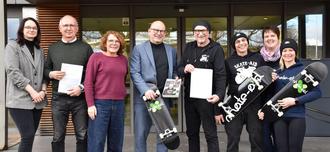 Auch das Projekt des Vereins skate aid hat als Zielgruppe Kinder und Jugendliche – allerdings diejenigen, die eine AD(H)S-Diagnose erhalten haben. In Kooperation mit Ärzten und Therapeuten wird das Projekt „Skaten statt Ritalin“ durchgeführt, das Kindern und Jugendlichen helfen soll, die motorische Unruhe durch Bewegung abzubauen. Der Erfinder des Programms, Titus Dittmann, war zur Übergabe des Bescheids extra aus Münster (Nordrhein-Westfalen) angereist. „An der Universität von Münster haben wir erforscht, wie das selbstbestimmte Lernen und die Bewegung mit dem Skateboard auf die betroffenen Kinder und Jugendlichen wirkt. Die Symptome der Erkrankung und vor allem das Aggressionslevel konnten wir deutlich senken. Es freut mich, dass im sich im Odenwaldkreis ein so aktiver Verein gegründet hat, der das Konzept in der Region bekannt macht“, erklärte Dittmann. Mit rund 72.000 Euro werden die Kosten für das benötige, qualifizierte Personal für zwei Jahre gefördert. Das entspricht 50 Prozent der benötigen Summe, der Rest wird aus Spendenmittel der Dachorganisation von skate aid getragen.