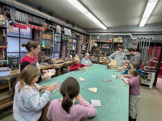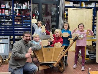 Darüber hinaus ermöglichte Geschäftsführer Herr D. Pistner einigen Grundschulkindern einen besonderen Einblick in die Werkstatt des Unternehmens. Dort durften die Kinder selbst aktiv werden: Es wurde gefeilt, geschmirgelt, gebohrt und graviert. Mit großer Begeisterung und viel handwerklichem Geschick entstanden dabei eigene Holzobjekte. Am Ende des Nachmittags konnten alle Teilnehmerinnen und Teilnehmer - vornehmlich Mädchen - mehrere selbst hergestellte Werkstücke wie Türschilder, Schlüsselboards oder Weihnachtsfiguren stolz mit nach Hause nehmen.