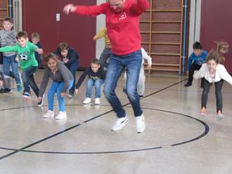 Große Freude herrschte am Donnerstag als Tino und Tina von Tinos Danceworld der 3. und 4. Klasse einen Besuch abstatteten.