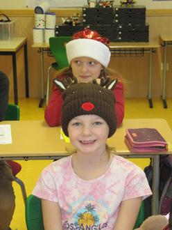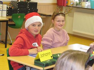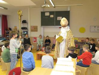 Am 6. Dezember stattete der Nikolaus laut klopfend an der Klassenzimmertür allen vier Klassen seinen Besuch ab.