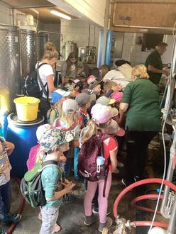 Wir durften gleich von dem frisch gepressten Saft probieren und den abgefüllten Saft können wir noch viele Wochen im Kindergarten genießen. Vielen Dank an Fam. Fröhlich, dass Sie sich Zeit für uns genommen haben.