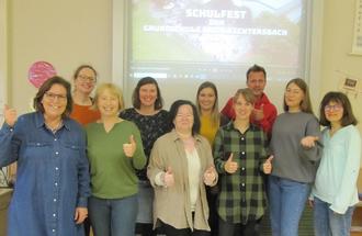 Sie übergaben den Stick vom Tanzfest an Schulleiterin Sabine Oschmann-Hockgeiger, ihrem Team, Vertreterinnen des Elternbeirats, Marina Jordan und des Fördervereins, Alexandra Vogler, zur Weitergabe.