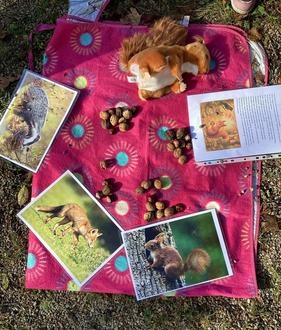 Danach gab es eine interessante Eichhörnchengeschichte zum Lauschen. Im Anschluss darauf wurden wir selbst zu Eichhörnchen und mussten unsere Wintervorräte aus verschiedenen Nüssen verstecken. Es war gar nicht so einfach sich alle Verstecke zu merken und sie später wieder zu finden. Während des Spieles mussten wir uns immer beeilen und achtsam sein, da die natürlichen Feinde des Eichhörnchens wie Dachs und Fuchs auch immer lauern.