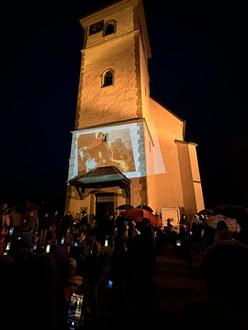 Im Jahr 2020 war es Corona geschuldet, dass ein Gottesdienst in der Kirche nicht möglich war und dieser vor der Kirche stattfinden musste. In den nun darauffolgenden Jahren waren sich alle einig, dass ein Gottesdienst unter freiem Himmel ein ganz besonderes Flair mit sich bringt und diese Veränderung beibehalten werden soll – vor allem mit der aus der Not geborenen wirkungsvollen Projektion der Martinsgeschichte an den Kirchturm.