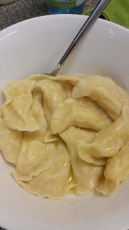 Diesmal stand ein Wunschgericht unserer Kinder mit osteuropäischem Hintergrund auf dem Speiseplan: Wareniki. Diese gefüllten Teigtaschen gehören in vielen Familien zu den traditionellen Lieblingsspeisen. Elvira, die ursprünglich aus Kirgistan stammt, hatte nicht nur alle nötigen Zutaten besorgt, sondern brachte auch das passende Rezept und ihre Erfahrung mit.