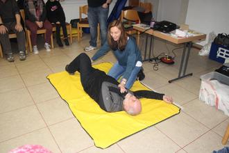 Nicht nur Theorie wurde vermittelt; es war auch der praktische Umgang mit den verschiedenen Verbandsmaterialien unter Beweis zu stellen, das Anwenden der stabilen Seitenlage sowie die Durchführung einer Herz-Lungen-Massage anhand eines Dummys. In nur kurzer Zeit konnte sehr viel Wissenswertes vermittelt werden und jeder der Teilnehmenden schloss den Kurs mit dem guten Gefühl ab, verschiedenste Situationen nun wesentlich besser einschätzen, sensibler auf seine Mitmenschen achten und im Notfall helfen zu können.
