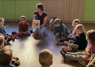 Im Rahmen eines Förderprogramms erhielten alle Eltern unserer Dreijährigen durch Thekla Heinz von der kath. öffentlichen Bücherei das Set „Lesestart 1-2-3“.