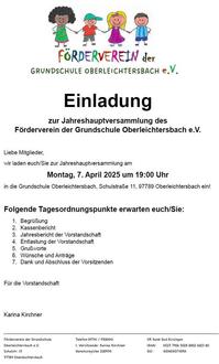 Einladung Förderverein Grundschule Oberleichtersbach e. V.