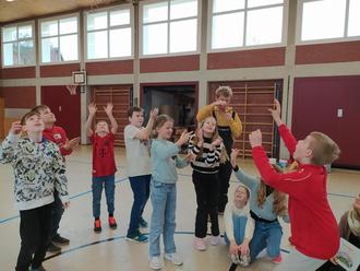 Am Donnerstag, 20.02.25 kamen Jasmin und Lukas vom Haus der Schwarzen Berge zu uns in die 4. Klasse und informierten uns zum Thema “Klima”. Zuerst sollten wir sagen, was uns dazu einfällt und Jasmin schrieb Stichpunkte an die Tafel. Anschließend durften einige Kinder mit Wettersymbolen das Wetter an ihrem Geburtstag legen und die anderen mussten erraten, in welchem Monat sie Geburtstag haben. Danach ging es um den Unterschied zwischen Wetter und Klima. Wir bekamen kurze Texte zum Lesen und mussten entscheiden, ob es sich um das Wetter oder das Klima handelt. Das war nicht immer leicht und wir lernten, dass das Wetter kurzfristig und regional, das Klima längerfristig zu betrachten ist. Anschließend gingen wir in die Turnhalle und erfuhren in einem Spiel, wie CO2 - Moleküle nicht mehr durch die Atmosphäre durchkommen und so den Treibhauseffekt der Erde verursachen. Dazu hat Lukas Seifenblasen gepustet und wir konnten sehen, wie die Moleküle eine Kette bildeten.