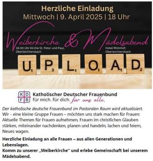 am Mittwoch, 9.4.25 um 18 Uhr in Oberleichtersbach (Wort-Gottes-Feier),