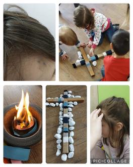 Einige Kinder wussten schon, dass nun wiederum eine besondere Zeit beginnt: die vierzigtägige Fastenzeit vor dem Osterfest. 40 Tage sind ganz schön lang! 40 Steine, die die Kinder um das Kreuz in der Mitte legten, verdeutlichen dies.