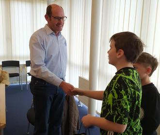 Geduldig beantwortete Herr Muth alle unsere Fragen und wir Schüler schrieben seine Antworten in Stichpunkten fleißig mit. Ein paar Fragen waren selbst für den Bürgermeister gar nicht so einfach und er musste erst überlegen. Manche Schüler äußerten auch Wünsche für ihren Ort, z.B. neue Spielgeräte oder einen Jugendraum.